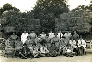 | Members of the Women’s Forage Corps posed in front of laden General Service Wagons. Image from the Hampshire and Solent Museums |